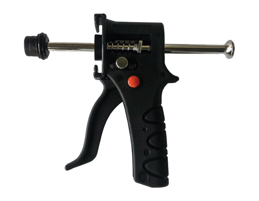 Le modèle GELGUN en plastique noir rigide est simple d'utilisation et rès robuste. Il intègre un joint d'étanchiéité et une tige poussoir en métal (non-cantée).