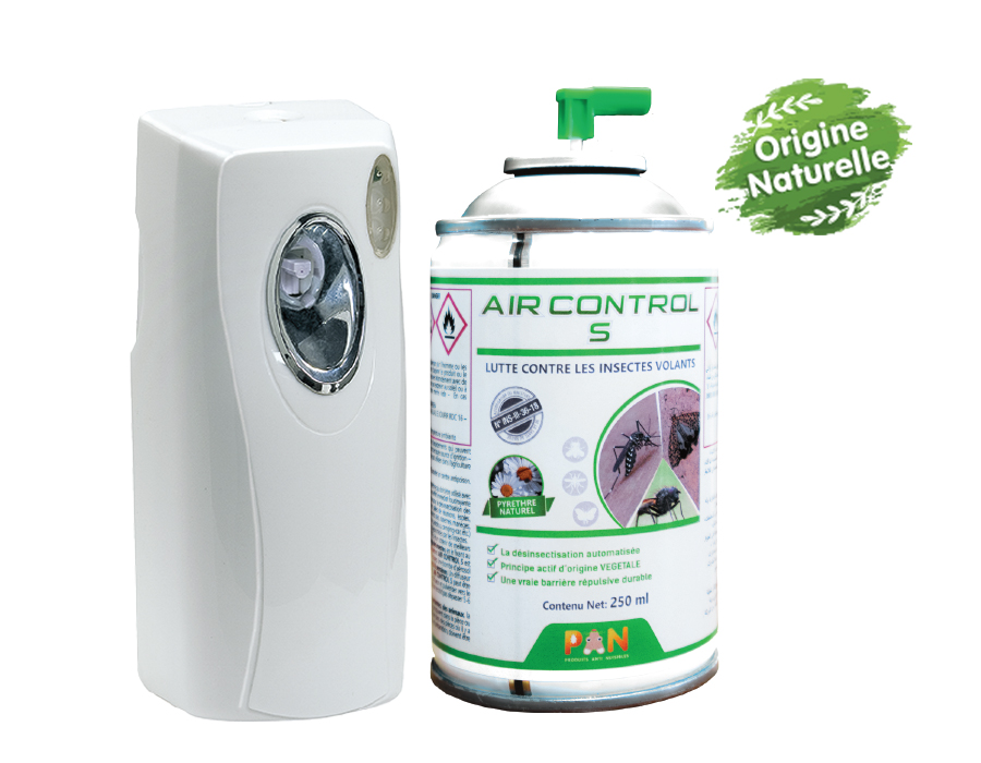AIR CONTROL S contient une matière active d’origine naturelle (le pyrèthre) qui élimine er repousse rapidement les insectes volants dans tous types de locaux (villas, bureau, restaurant, cafés, commerces..)