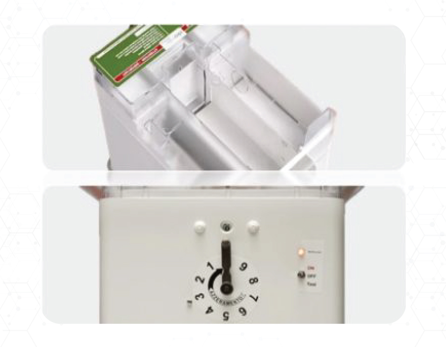 Sans danger et non-polluant, EKOMILLE est un piège en plastique renforcé, alimenté par une pile 9V (fournie) pour un fonctionnement électromécanique